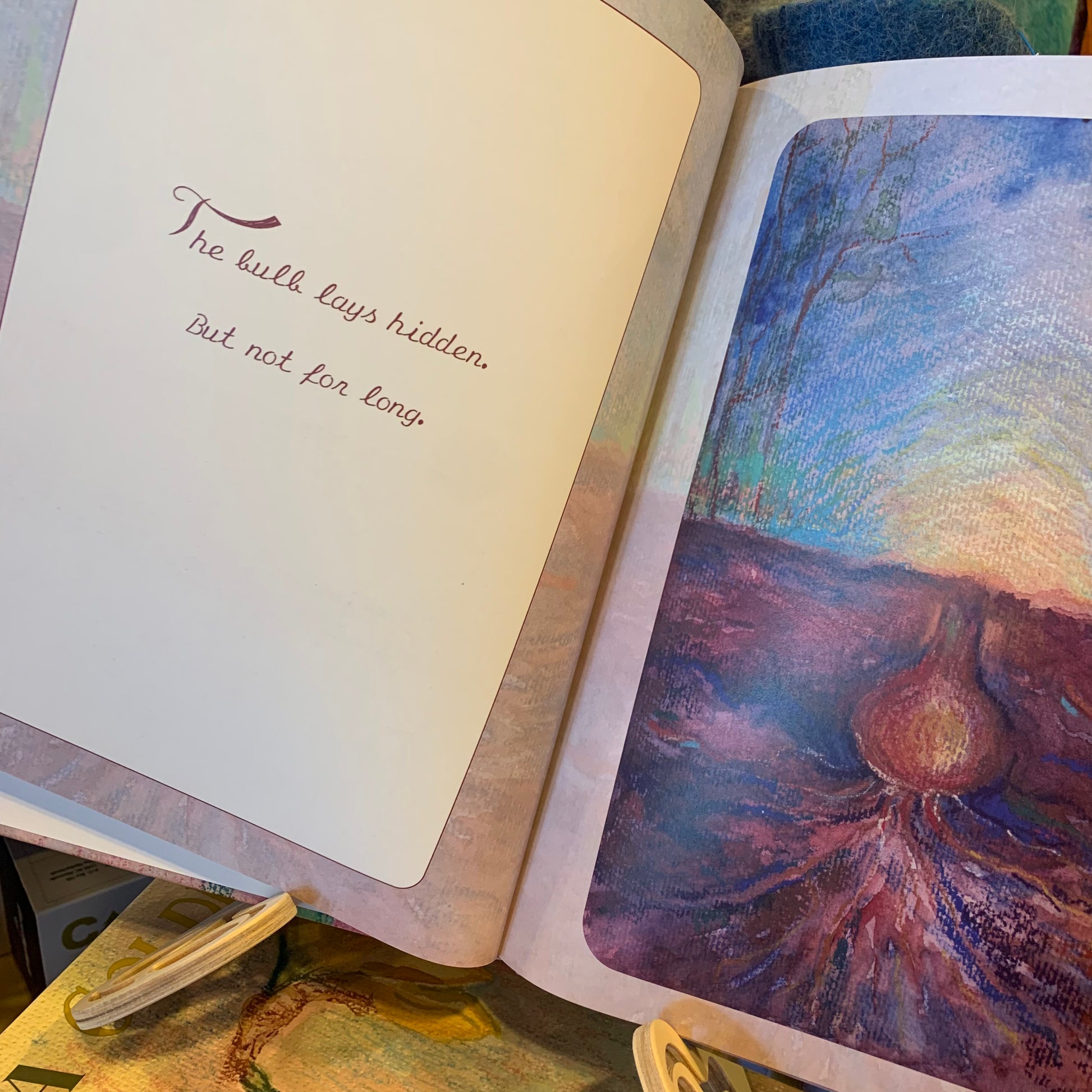 A Golden bulb follows the cycle of daffodils from planting in Autumn, shoots appearing through the soul, the weather as the bulb grows, to the flower bud appearing after the solstice, to blooming; and what else we can observe in the spring? Then leaves fading and the cycle starts again.