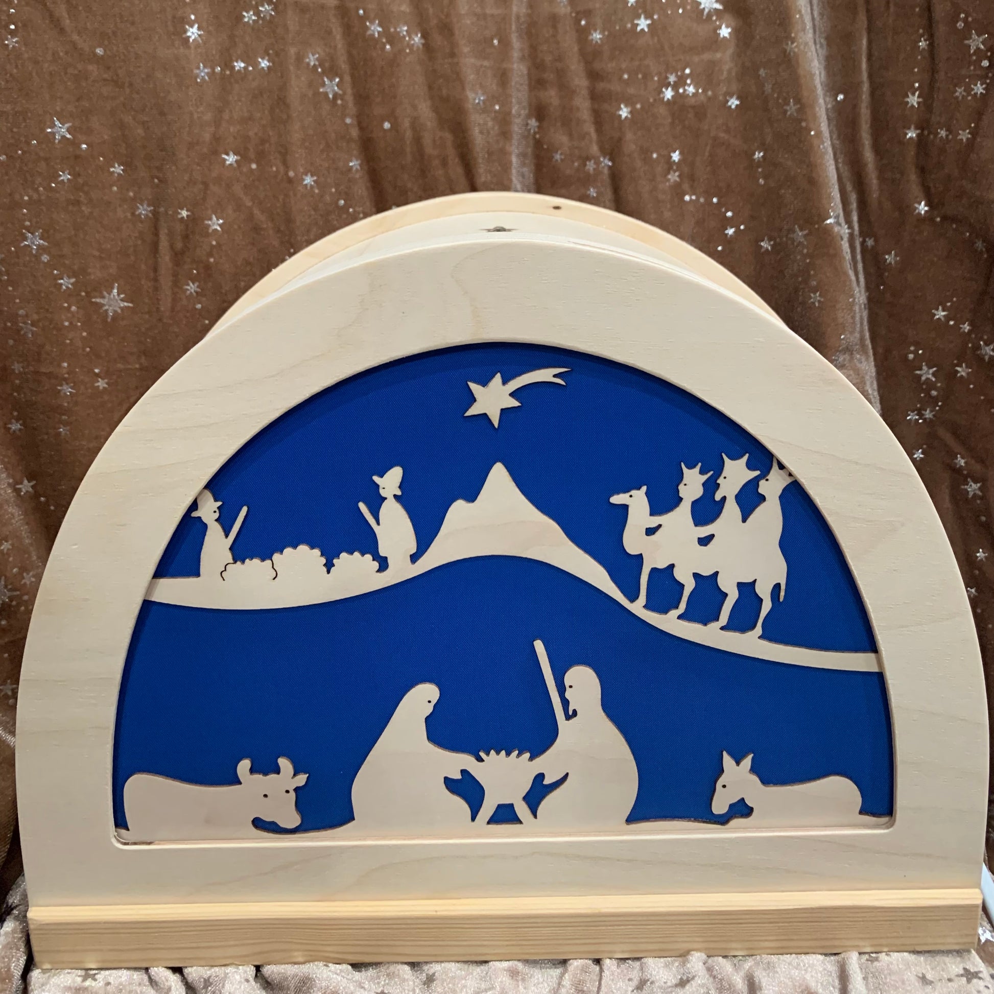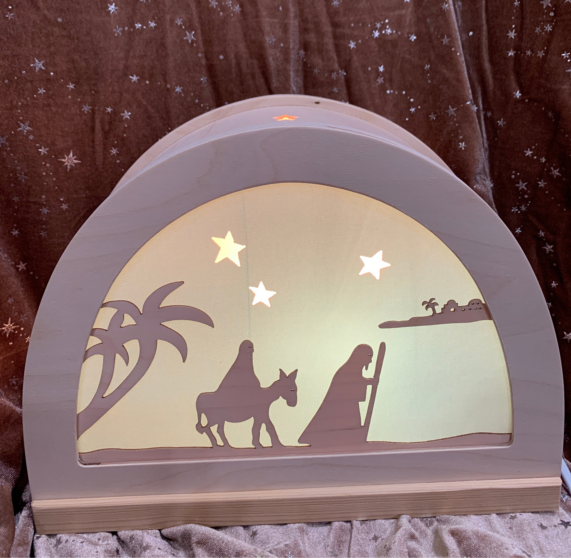 The lamps come with a standard Australian socket fitting. A small low wattage light globe (not provided) with a small screw fitting screws into the socket placed inside the lamp to light up the silhouette cut out, bringing a touch of magic and wonder into the room. The lamp may be sat onto a shelf or benchtop, or can be wall mounted.