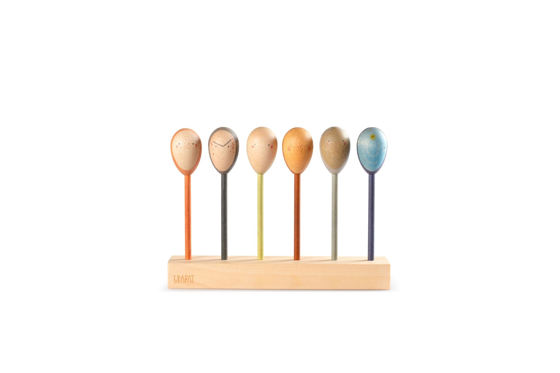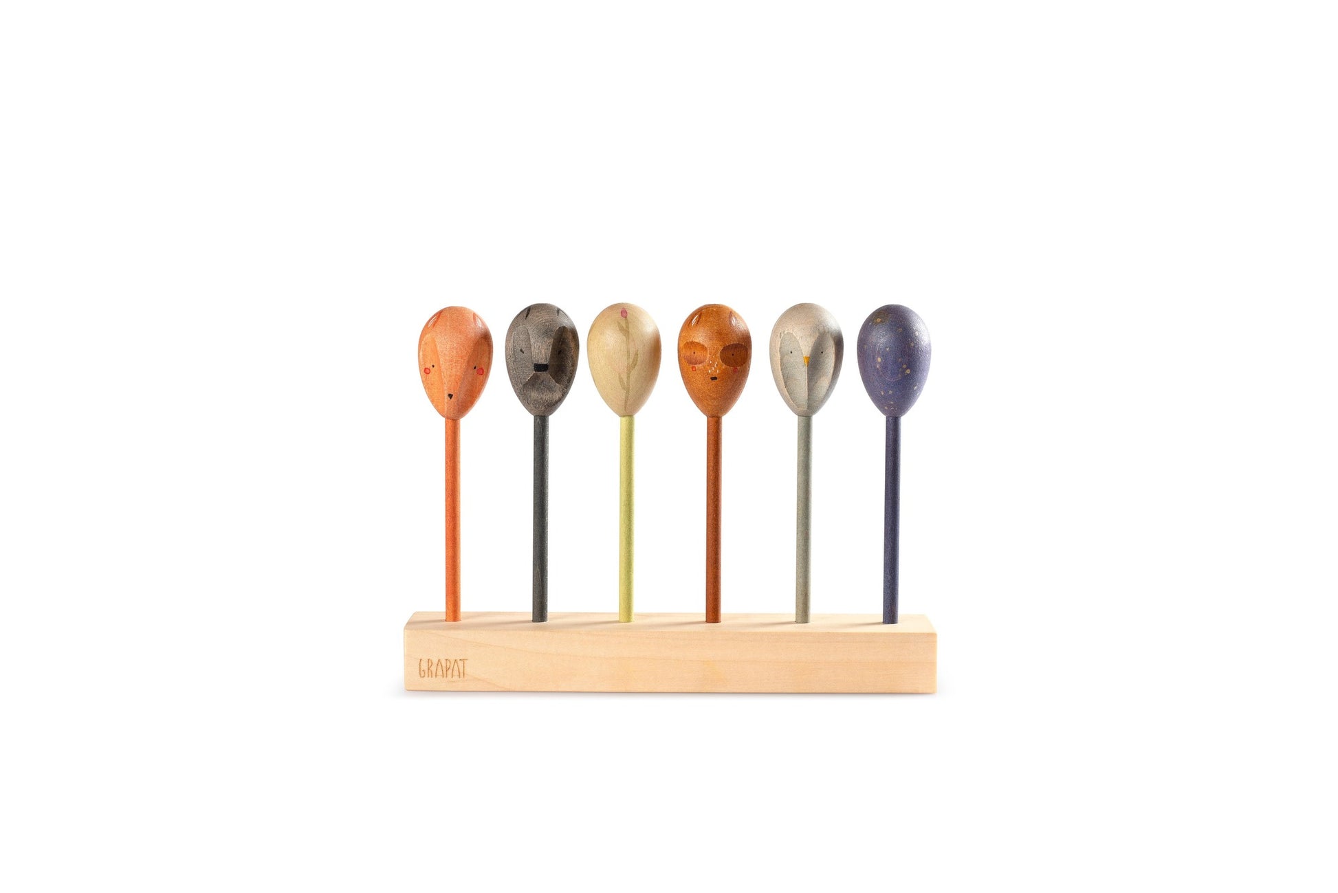 Twin souls is a collection of 6 beautifully crafted double faced wooden puppet heads with a stand. Perfect for story telling, roll play, puppet play, Ideal for educators resources and for therapy play.