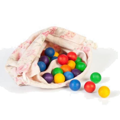 Contains: 36 wooden marbles, 6 of each colour (yellow, orange, red, green, blue and purple)