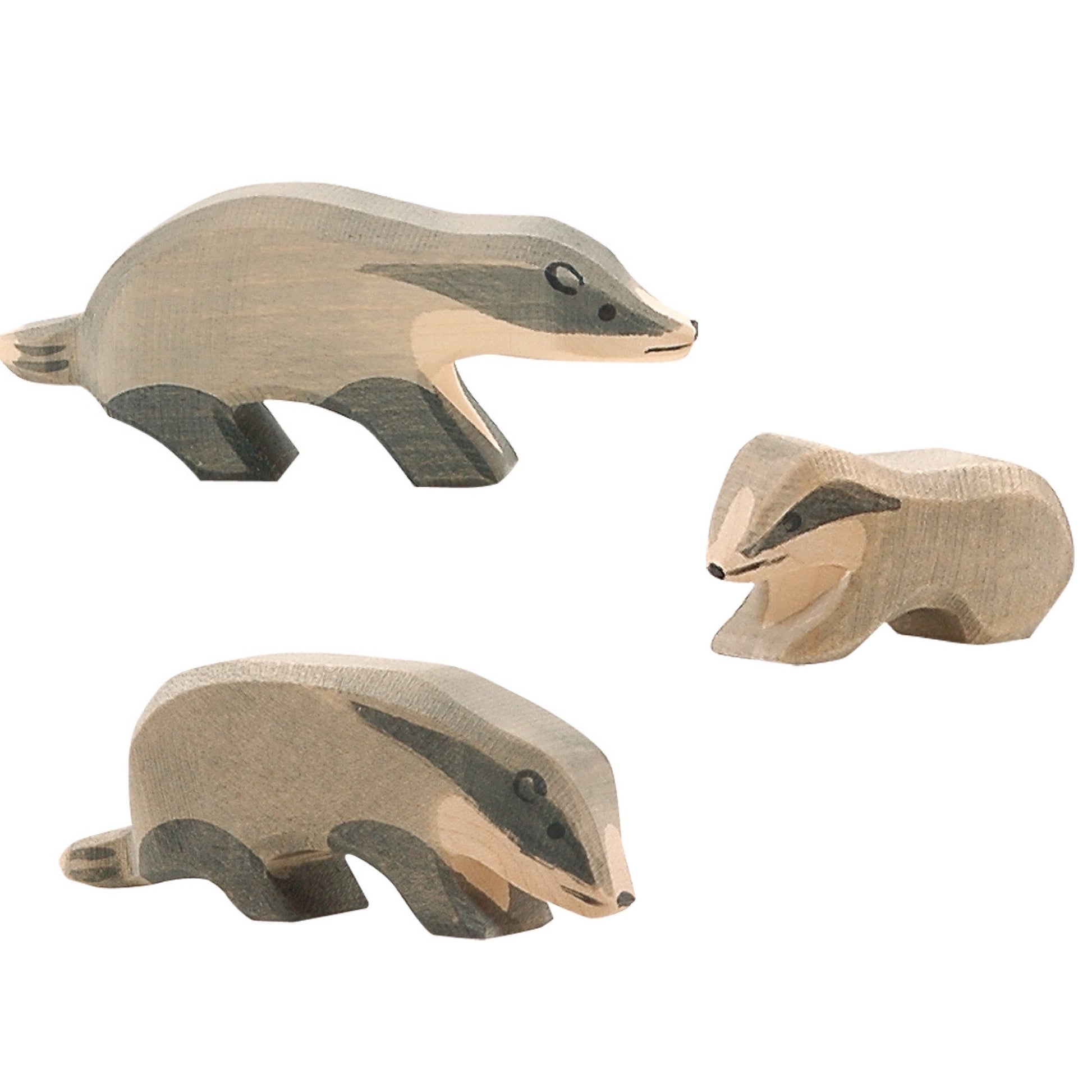 Ostheimer Badger is available individually as two adult postures: head down and head straight, and a baby. Purchase alone, or collect a charming family of three if desired.