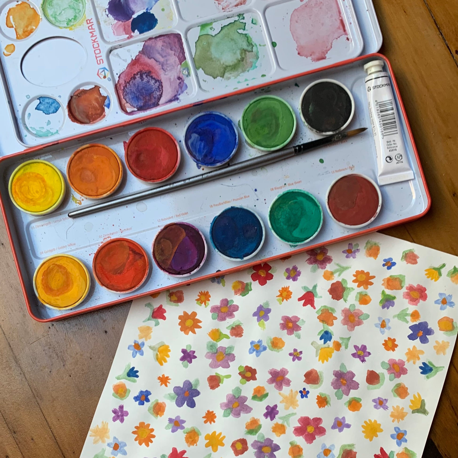 By varying the use of water you can make the paint as translucent or bold as you like, and use the tray to mix a little of the white paint with colours to make the colours pastel.