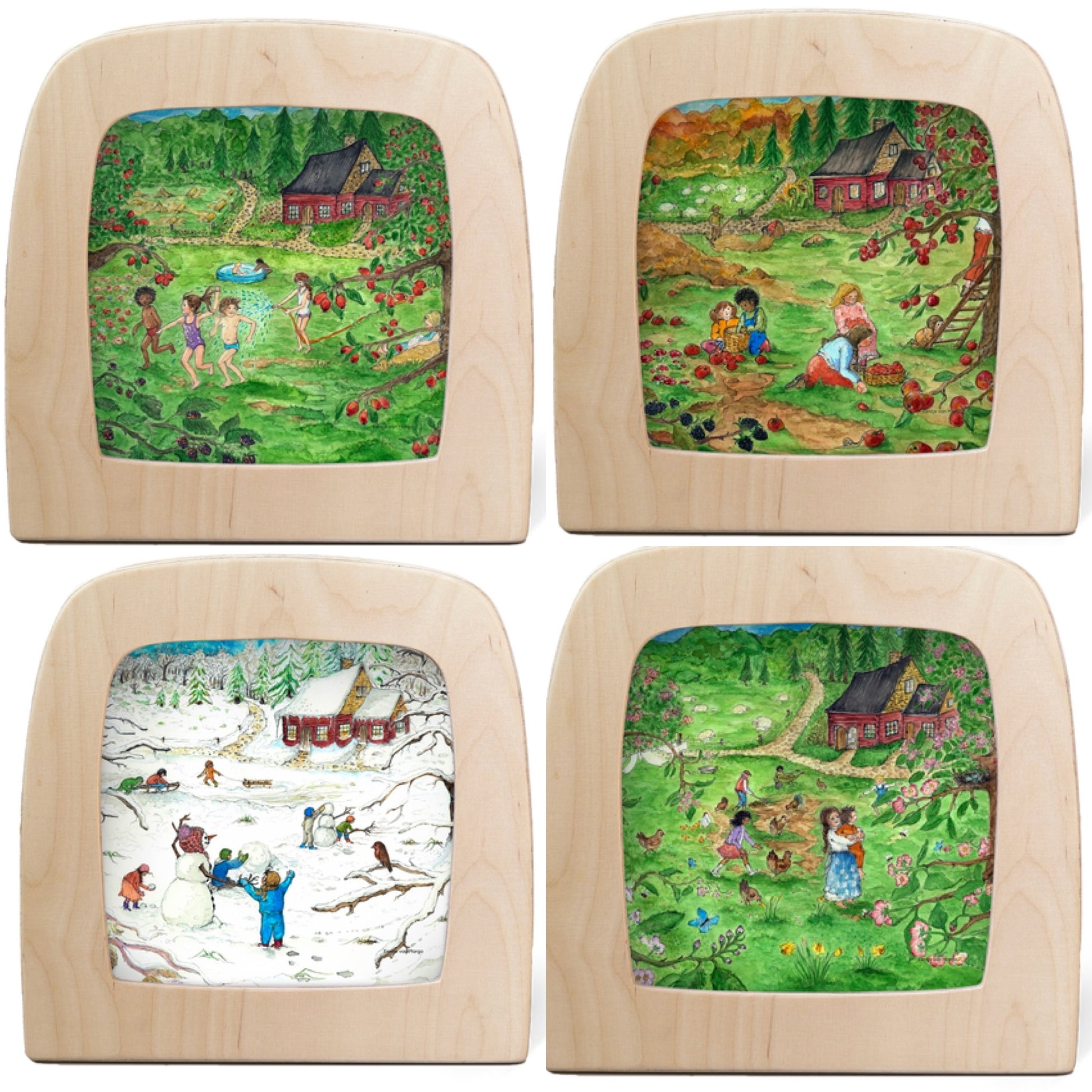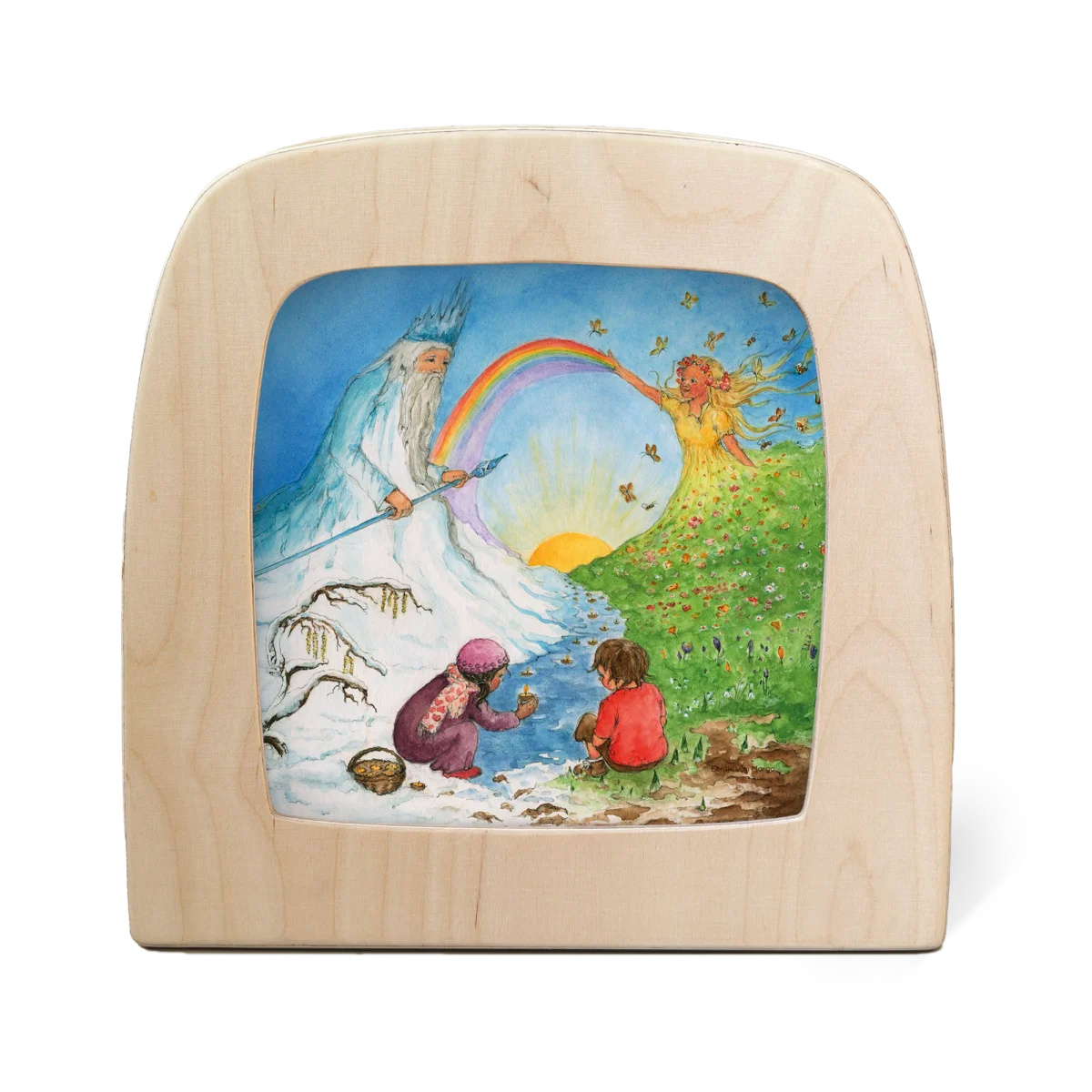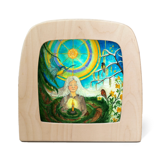 Margo's drawings feature the cycle of seasons as well as the magical and mystical, her love for drawing is evident as the screens spring to life as the light shines behind them.