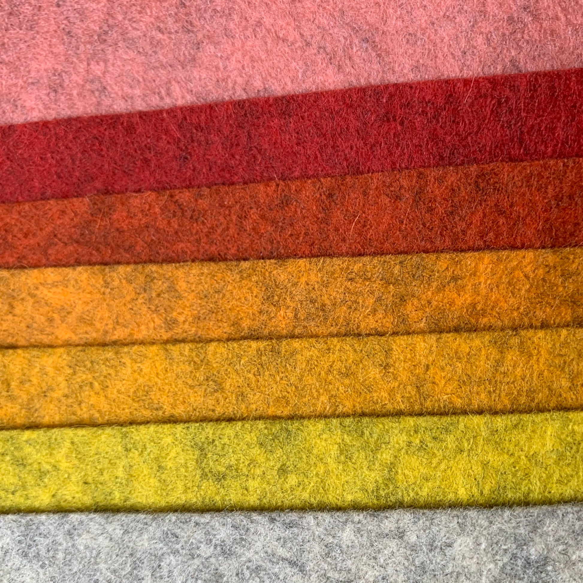 - Mottled (heathered) felt can be prewashed to resemble handmade felt